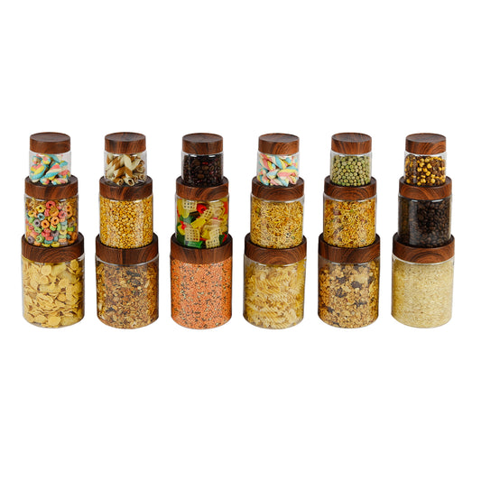 CORAL TRANSPARENT STORAGE JARS - SET OF 18 - WITH WOODEN LIDS - 200 ml, 500 ml, 1000 ml