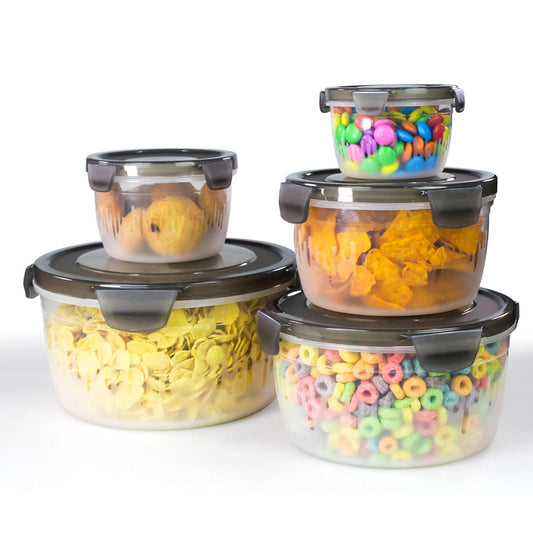 PEARLPET PP Container Circular Plastic Food Storage Container with Air Tight Lid | Fridge & Freezer Dabba Containers, Fruit Box Set of 5 (300ml, 600ml, 1200ml, 1800ml and 3000ml)
