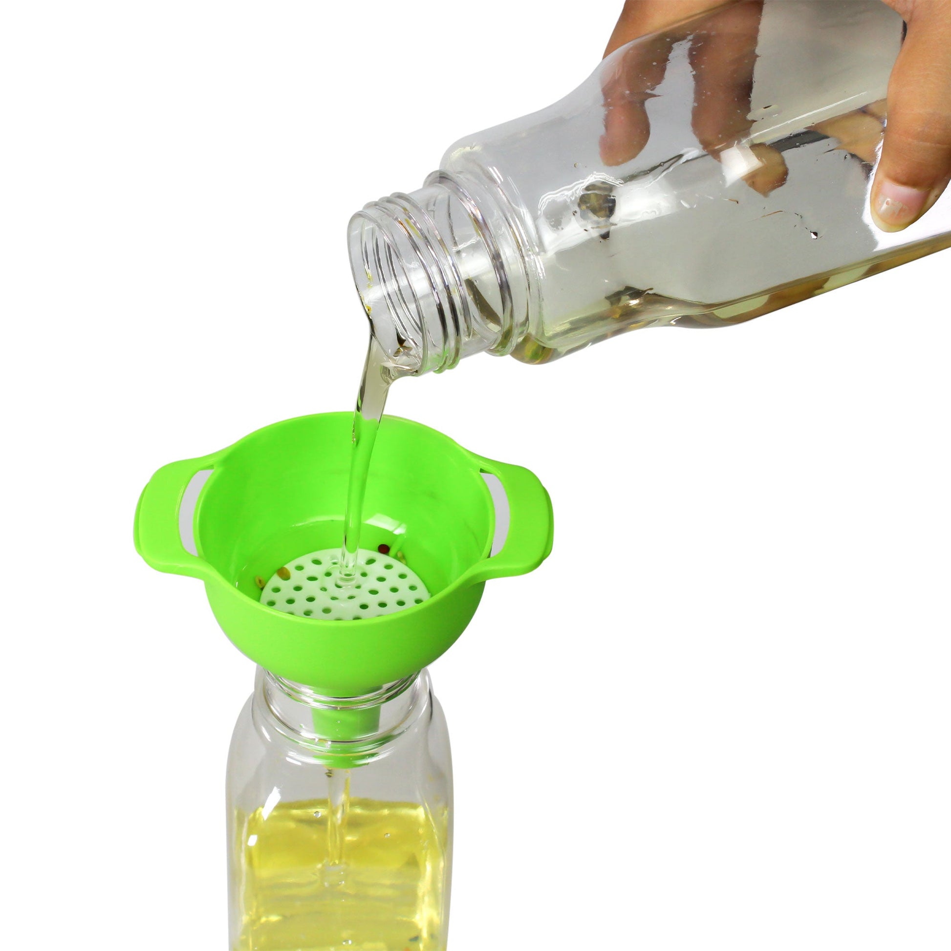 This handy set includes three different sized funnels, each equipped with a detachable strainer for mess-free transferring of liquids and dry ingredients.