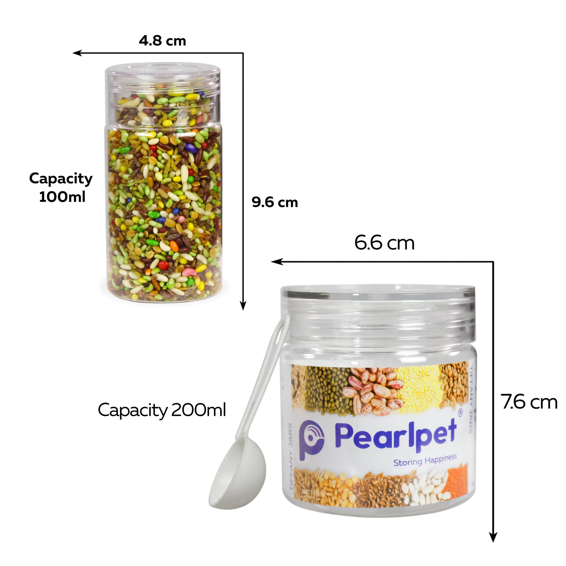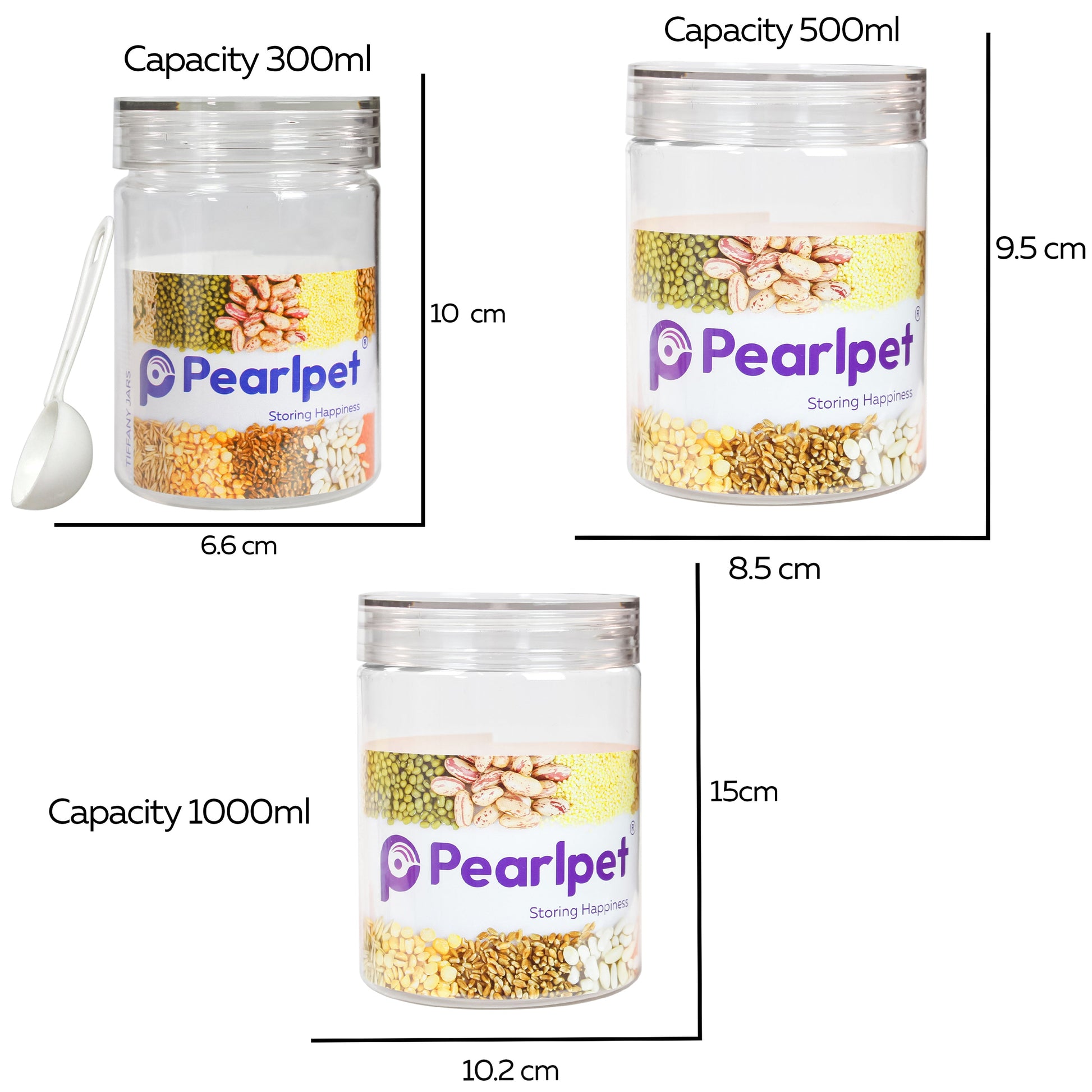 Pearlpet Tiffany Transparent Jars Set of 24 pieces (3pcs x100ml, 3pcs x200ml, 6pcs x300ml, 6pcs x500ml, 2pcs x1000ml, 2pcs x1400 ml, 2pcs x1700ml) with Hydrous bottle 6 pcs 1000ml (Transparent) |BPA-free |Leak Proof |Stackable Jars
