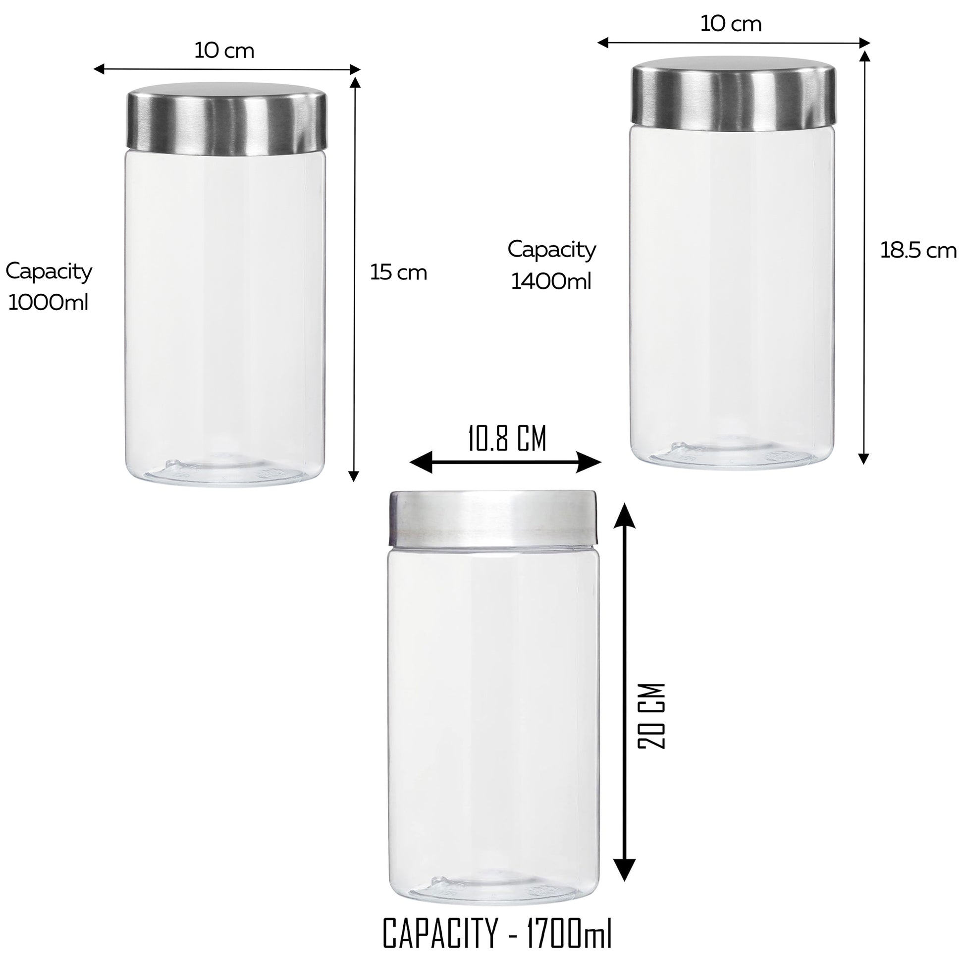 Pearlpet Plus jar Set of 30 pieces ( 6pcs x100ml, 6pcs x200ml, 6pcs x300ml, 6pcs x500ml, 2pcs x1000ml, 2pcs x1400ml, 2pcs x1700ml) With Lovely bottle Set of 6pcs 1000ml (Multicolor) |BPA free |Leak proof |Durable