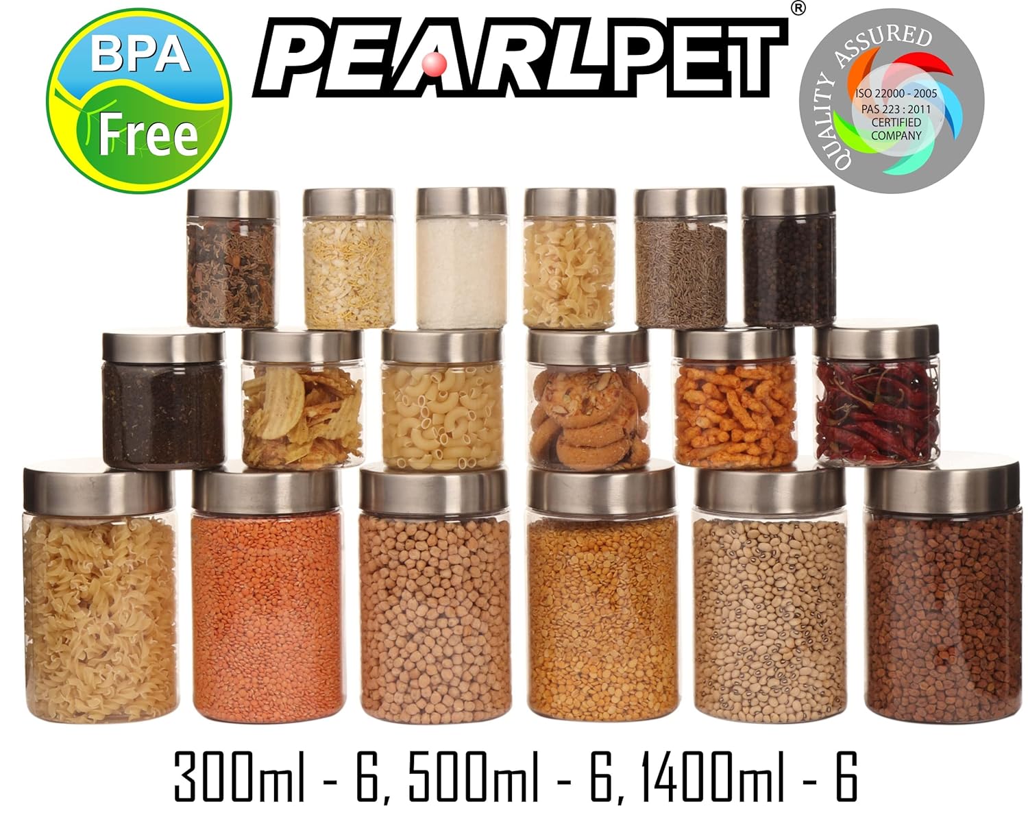 Plus Round Jars with Steel caps - Set of 18 - 300 ml, 500 ml, 1.4 litres