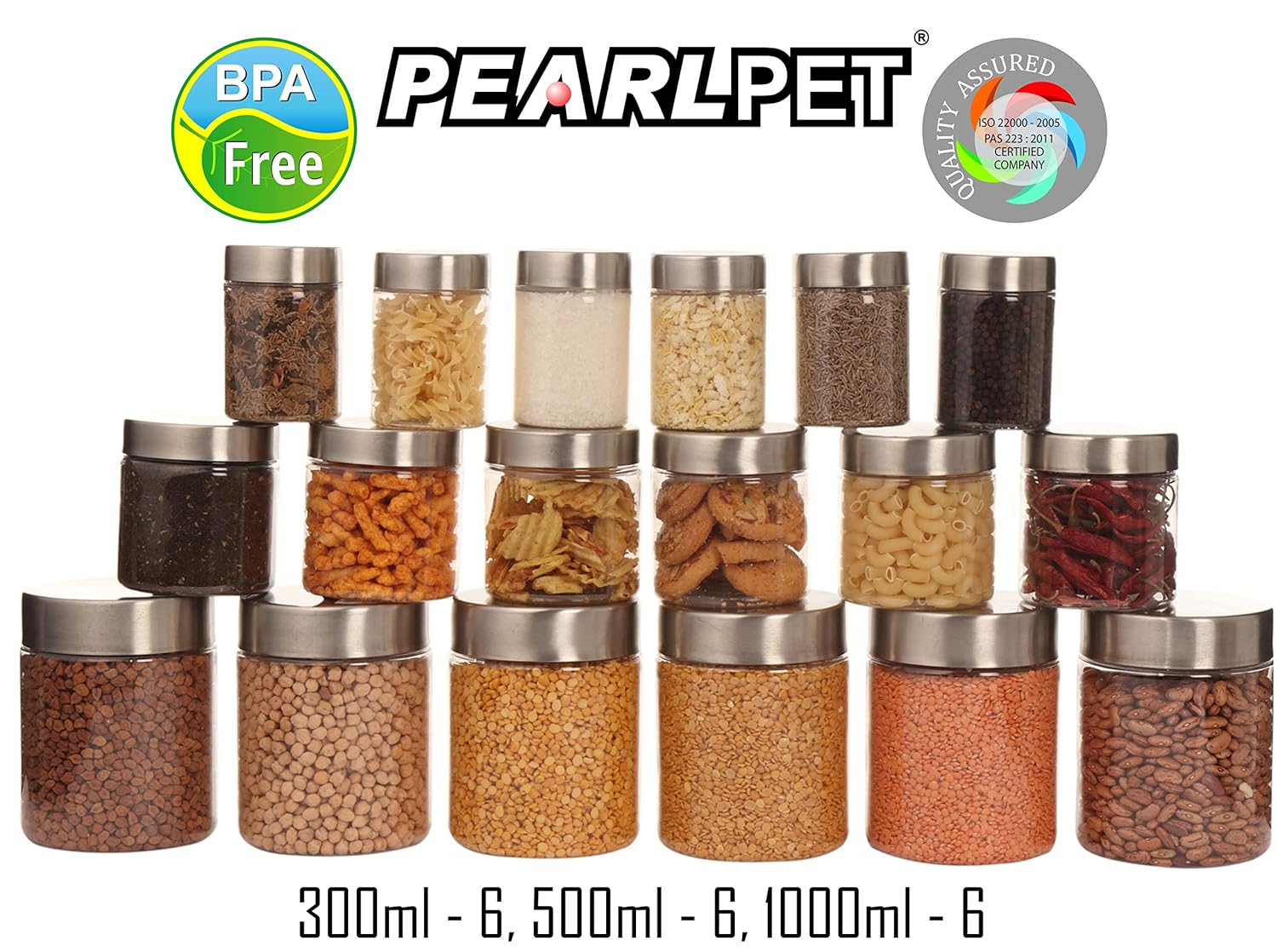 Plus Round Jars with Steel caps - Set of 18 - 300 ml, 500 ml, 1000 ml