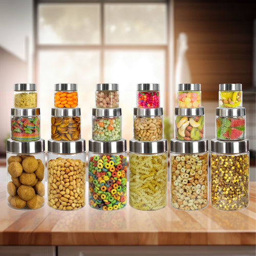 Plus Round Jars with Steel caps - Set of 18 - 200 ml, 500 ml, 1000 ml