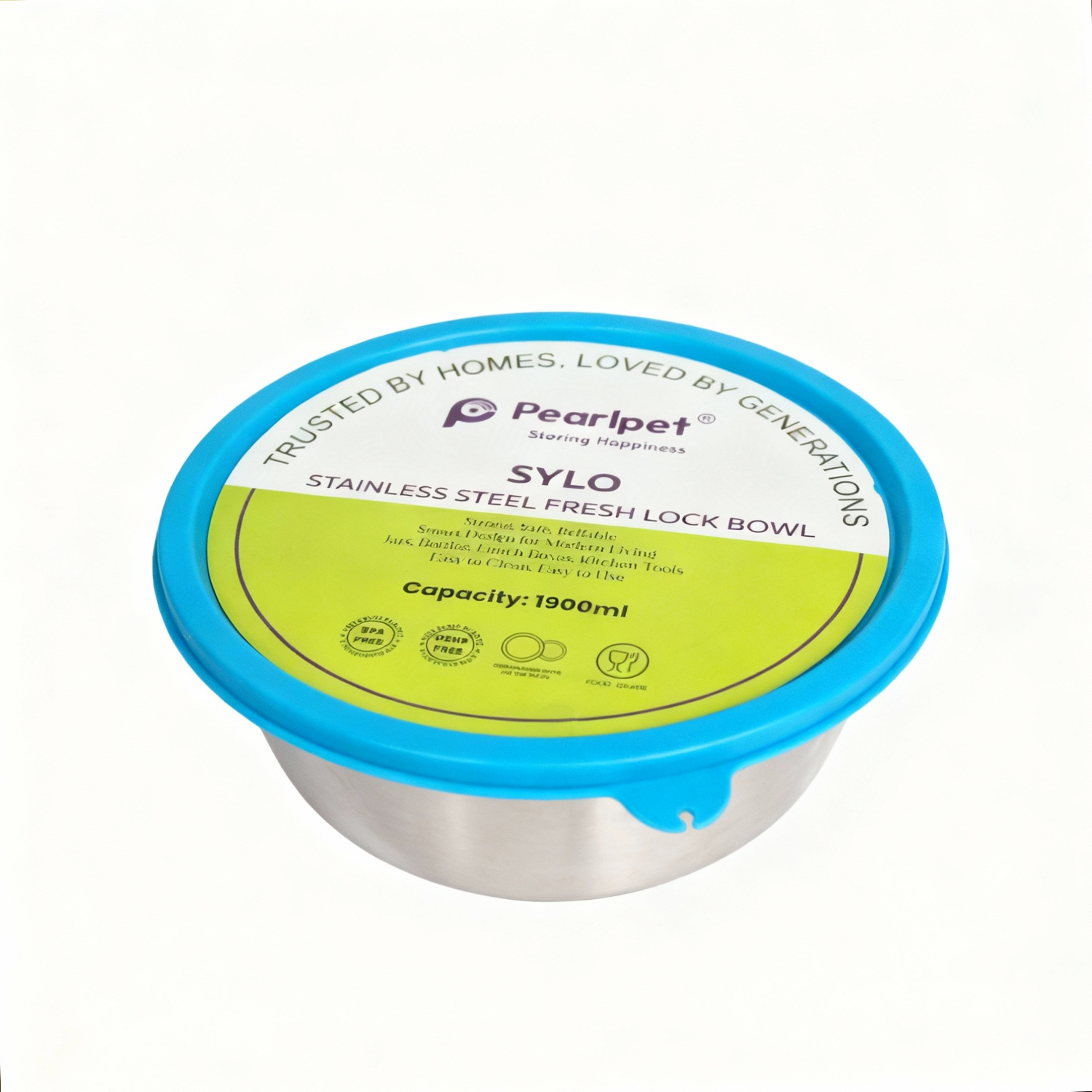 Sylo Stainless Steel Bowl 1900 ml | Airtight Food Storage Bowl with BPA-Free Lid