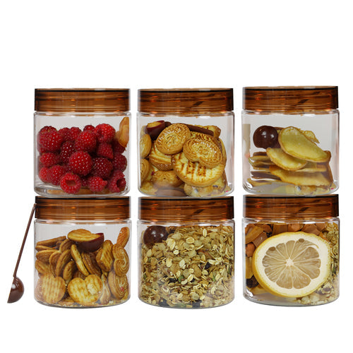 Tiffany Plastic Containers for Kitchen Storage with Spoon | BPA-Free, Stackable Jars | Set of 6 (500 ml)