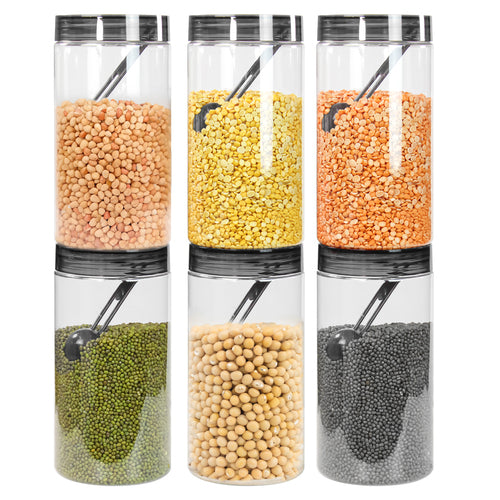 Tiffany Plastic Containers for Kitchen Storage with Spoon | BPA-Free, Stackable Jars | Set of 6 (1400 ml)