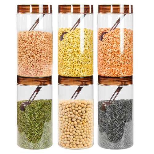 Tiffany Plastic Containers for Kitchen Storage with Spoon | BPA-Free, Stackable Jars | Set of 6 (1700 ml)