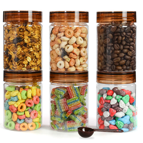 Tiffany Plastic Containers for Kitchen Storage with Spoon | BPA-Free, Stackable Jars | Set of 6 (300ml)